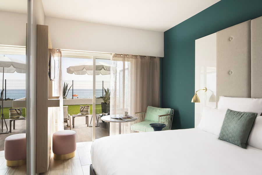 « l’emplacement avec accès direct plage / l'ambiance lounge et détente sur la terrasse du restaurant / la piscine sur le toit / les chambres en rez-de-jardin avec vue mer »